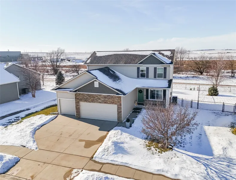 Discover this beautifully cared-for two-story home in Grimes, nestled in the sought-after Meadowlark conservation community. Step inside to an open and welcoming main level featuring a cozy gas fireplace and a spacious kitchen with generous counter space and stainless steel appliances-all included. The main floor also features a convenient half bath and laundry area, complete with washer and dryer. Upstairs you'll find four comfortable bedrooms, including a primary suite with a private bath and walk-in closet, plus an additional full bathroom. The finished lower level offers great space for a rec room or home gym and includes a 3/4 bath and ample storage. Step outside to a peaceful fenced yard with no rear neighbors-perfect for relaxing under the gazebo-covered deck. Enjoy nearby walking trails, green space, and quick access to I-80/35, with shopping, dining, and more just minutes away. ...