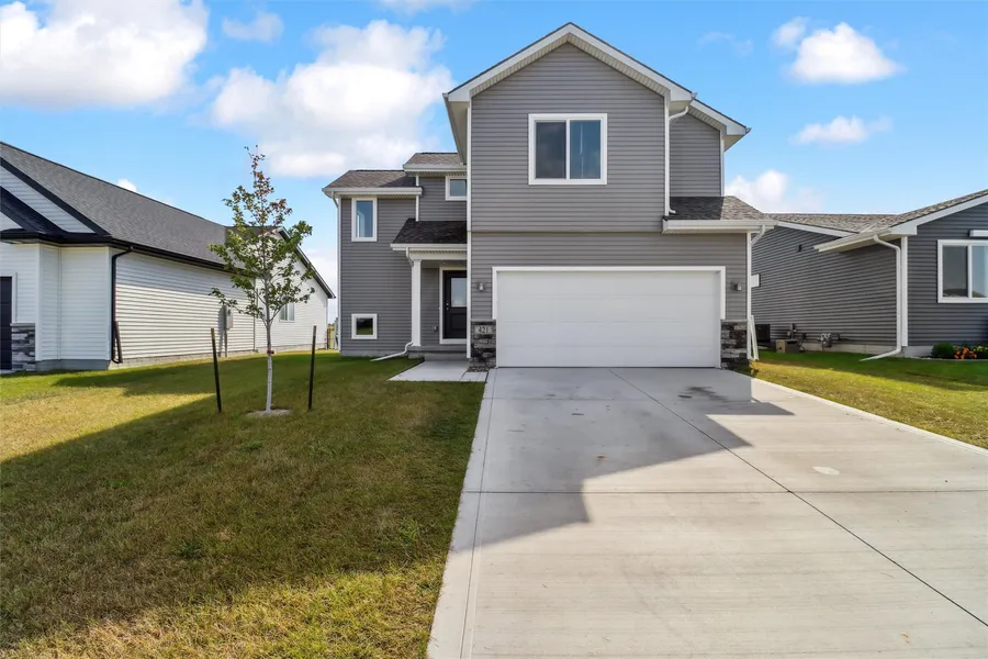 Just like new Two-Story Greenland Home in the desirable Harvest Meadows Neighborhood. Modern finishes including quartz countertops, backsplash and all SS Appliances, Large island with seating. Cozy and inviting living room with electric fireplace and Shiplap accent wall. Half Bath and drop zone off the kitchen. Three spacious bedrooms upstairs. Primary bedroom with a private bath and walk in closet. Full hall bath for family bedrooms. Lower level is ready for your finishing touches for future living space and stubbed for an additional bathroom. Two Car Attached garage. Small town feel with easy access to Interstate and Altoona. Call for a Private showing today!