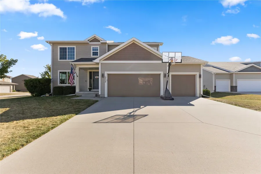 Welcome to this spacious 5-bedroom, 4-bath home with over 2,600 sq ft of finished living space, tucked away on a quiet cul-de-sac corner lot in the heart of Grimes. The main living area features a dual-sided fireplace that creates a warm and welcoming atmosphere, while the kitchen includes a pantry, granite countertops, and gorgeous marble backsplash. Off the garage, enjoy a mudroom with cubbies and remodeled 1/2 bathroom. Upstairs, you'll find four bedrooms on one level, including the HUGE primary suite with a large walk-in closet, as well as a convenient second-floor laundry room. Bathrooms throughout the home have been beautifully updated with quartz countertops, and the lower level provides additional living space with daylight window and shiplap design fireplace area with wood mantel ideal for cozy nights or hosting guests. Enjoy a 3/4 bathroom and another bedroom with egress. Step outside to enjoy the newly built Trex deck, fenced backyard, brand-new 10x12 exterior shed, with bike trails, prairie conservation and green space just steps away. Additional highlights include a 3-car garage, access to Hwy 141 for an easy commute and placement in the highly desired DCG school district. This home is move-in ready and waiting for its next owners to enjoy, schedule a showing today! All information obtained from seller and public records.