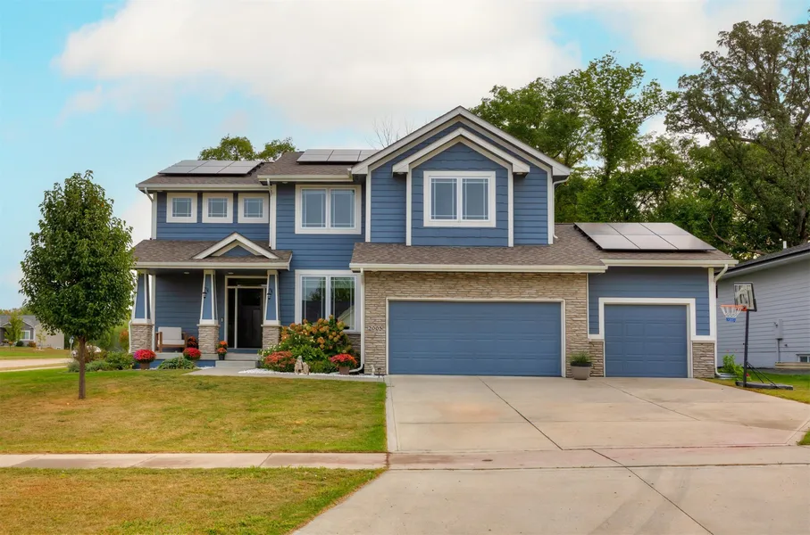 Welcome to 2005 SE Justice Court, beautifully maintained and move in ready, tucked inside one of Ankeny's most desireable neighborhoods. This home is the perfect balance of modern updates, thoughtful design, and inviting spaces to gather, entertain and relax. With 3,700 sqft of finished living space, 5 potential bedrooms, a fully finished lower level and solar panel energy system that is completely paid for, this home combines functionality with financial savings - an incredible value in today's market! The main level boasts a bright, open concept floor plan with expansive windows and cozy fireplace. The kitchen is open and spacious with large center island, quartz countertops, walk in pantry and ample cabinetry. The adjacent dining space opens to a sliding glass door that leads to the covered deck with overlooking the private backyard with mature trees. Also on the main floor is a versitile front flex room, perfect for home office, playroom or formal sitting area, as well as a stylish half bath conveniently tucked away for guests. Head upstairs to discover 4 generously sized bedrooms, including the spacious primary suite with a spa inspired ensuite bath - double vanity, soaking tub and separate tile shower. The large laudry room with utility sink, storage and folding table/hanging area top off the 2nd floor. The fully finished lower level is the icing on the cake - with built in shelving flanking the entertainment center, dry bar and 5th nonconforming bedroom or bonus room.