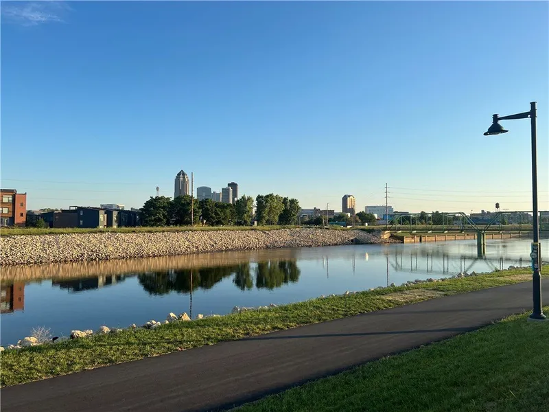 Fronts Raccoon River and bike trial. 7.82 acres overlooks downtown skyline. Next to new Edge.