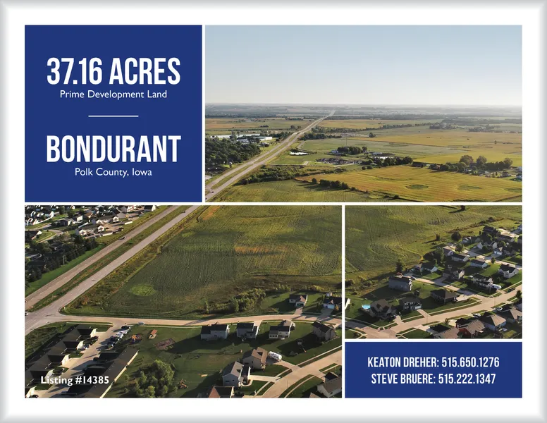 Offering 37.16 acres m/l of prime development land in rapidly growing Bondurant, Iowa. All sewer and water utility infrastructure is readily available to the site - contact agent for copies of utility infrastructure maps. There is a 12 inch water main along Lincoln St SE, as well as 3 to 8 inch mains that are stubbed in on the south side of the property at Cove St SE, Michael St SE, and Dee St SE. Sanitary sewer is located along Hwy 65 as well as all three streets stubbed in along the southern boundary of the property. Situated in Bondurant's Hwy 65 Corridor Growth District, the property is zoned for multifamily (R-3) as well as lower density / single family residential uses (R-2), allowing a developer to get creative with their project(s). These uses are also reflected in the city's Future Land Use Plan. Minor arterial roadways are proposed in the northeast corner of the property off Hw...