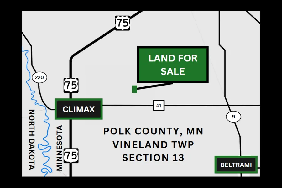 This prime farmland offers 320 total acres, with 313 acres of highly productive tillable ground. Conveniently located northeast of Climax, MN, this property has a strong history of producing high-yield crops, including sugar beets, corn, wheat, and soybeans.