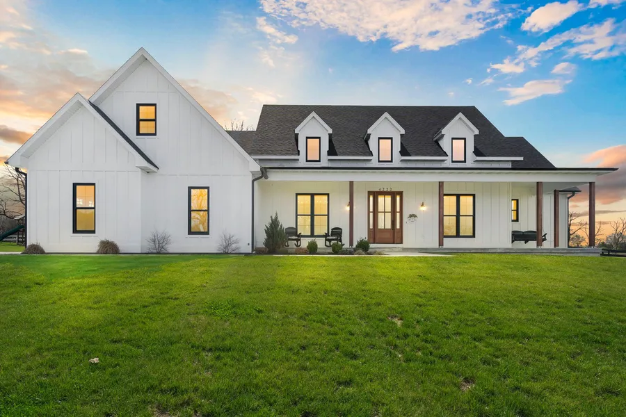 Remarkable home and farm on 38.76 acres just 30 minutes North of Springfield. Built in 2021 this Bolivar home boasts 4 bedrooms, private office, 2.5 bathrooms, formal dining room and open concept living room + high end kitchen. Other main features include: a 1,000 sq ft full ADA guest house with 1 bedroom/1.5 bathrooms, heated and insulated 40' x 53' shop with 4 bays, 42'x50' barn with gravel floor and electricity/lighting, 1.5 acre stocked pond plus plenty of rolling pasture for animals or additional buildings all with underground service and no electrical poles on the property. The main residence provides a well designed split-floor plan centered around the heart of the home, the open concept living room and kitchen with beautiful vaulted ceilings and floor to ceiling gas fireplace. The kitchen features a 10 ft island with quartz countertops, Samsung appliances, dual wall ovens, 5 burn...