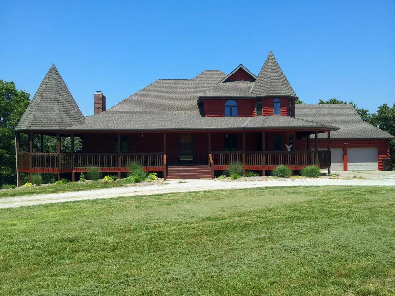 Stunning log home with over 4600 square feet of comfortable living with 3 bedrooms, 3 full bathrooms, 2 fireplaces, 2 living areas, fully equipped kitchen and a master suite that will not disappoint. This property sits on 18 acres of beautiful land and is set back in a private setting. The wrap around front covered deck is a perfect place to enjoy morning coffee watching the wild life. The main level of the home has incredible 23 foot ceilings with open beams that gives the home a wow factor. The center piece of the main level is the floor to ceiling stone, gas fireplace. This home is energy efficient. The open concept is perfect for entertaining. The lower level is finished with a large family room and wet bar, bedroom, full bath and workshop area. Perfect location North of Bolivar.