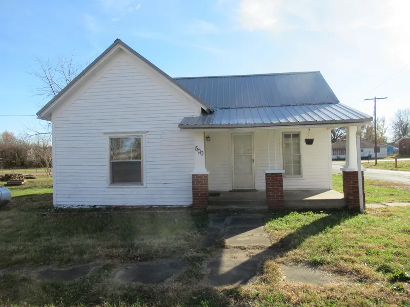 CORNER LOT - HOUSE & SHOP! Street on 3 sides of this 2 bedroom, 2 bath bungalow in Humansville! This home features a covered front porch, hardwood floors in 1 bedroom, the dining room, and the kitchen, some new doors & trim. The shop is 16 x 24 with a concrete floor. Metal roof is only 2 years old. Great investment or 1st home.