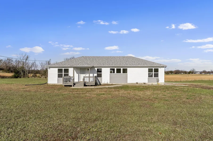 10 acres Open land and wide-sky views Single-level home with open-concept layoutThis 3-bedroom, 2-bath home sits on approximately 10 acres along West Miller Street, offering a blend of open pasture and gently rolling ground with long road frontage and deep driveway placement for added privacy. Built in 2020, the home features a spacious open living area, a dining space, and a centrally located kitchen. The single-level floor plan includes a large primary suite with two walk-in closets and a full bath, plus two additional bedrooms on the opposite side of the home for functional separation. Interior details include neutral finishes, recessed lighting, modern bathroom fixtures, and an electric HVAC system with electric and propane heating. A dedicated laundry room and an attached 2-car garage provide practical convenience. The acreage offers open space, with unobstructed sky exposure and views across the surrounding countryside. Property is on city water and city sewer. Approx. 0.3 miles to MO-215 for quick access to Pleasant Hope amenities. Nearby destinations include Pleasant Hope City Park, Dollar General, Pleasant Hope Post Office, and the town center within roughly 1 mile. Broadband availability varies by provider; buyer to verify service options. This property combines modern single-level living with acreage, open land, and close proximity to local amenities, an opportunity for those seeking space with convenient access to Pleasant Hope.