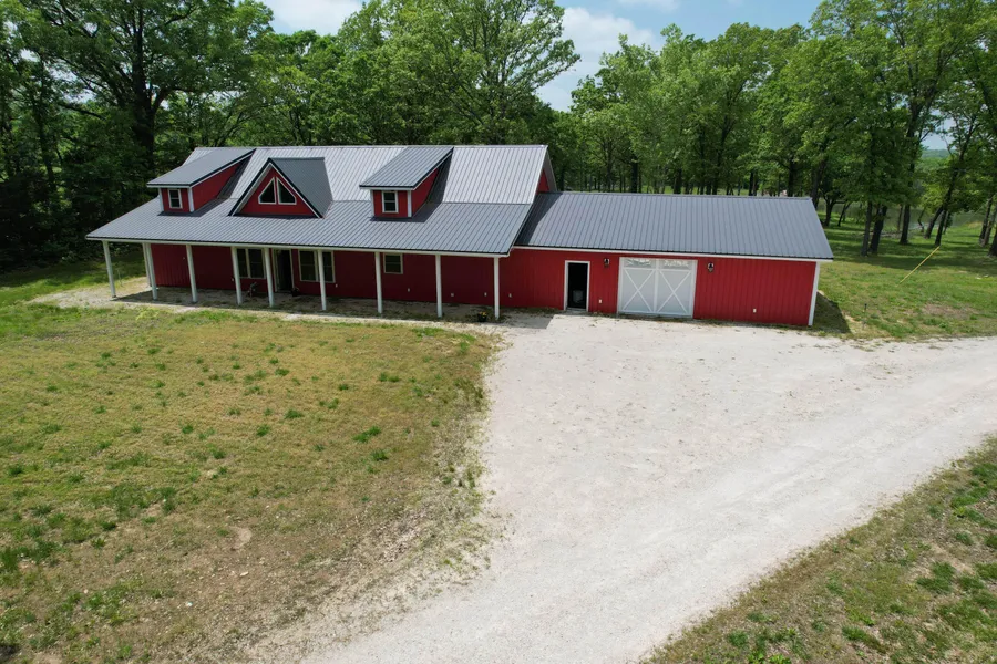 Back at no fault of seller (previously under contract prior to marketing the first time). What an opportunity! Listed Below recent appraisal valueThis mature 72 +/- acre property sits back off the road, backs to government land, and is minutes to Pomme de Terre lake. Drive down the lane to the property featuring mixed pasture and wooded acreage (some fenced), 3 ponds, a mid-higher level, metal clad 2-story, 3200+sf, 4 + bedroom, 3.5 bath, with loft home and more. The house is ready for you to make your final finishes to turn it into home. Currently features include an open concept common area with stamped concrete floors (radiant set up) on the main floor, tall ceilings and natural light flowing in. Main floor has a semi-split floorplan with a primary suite (including an attached office/sitting area, or dream closet), and 2 bedrooms, 1 hall bathroom, large laundry room on the other side. Beyond the laundry room is the heated/cooled garage/multi-use space with 3rd bathroom. Upstairs you will find the loft area, a half bath, unfinished 4th bedroom, and media room (or large 5th bedroom). Continue down the drive, past the house to find an RV pad overlooking the larger pond, a double carport, and another large concrete pad for parking, trailers, or your preferred use. Don't let this one slip by. (Buyers due diligence) Appointment only.
