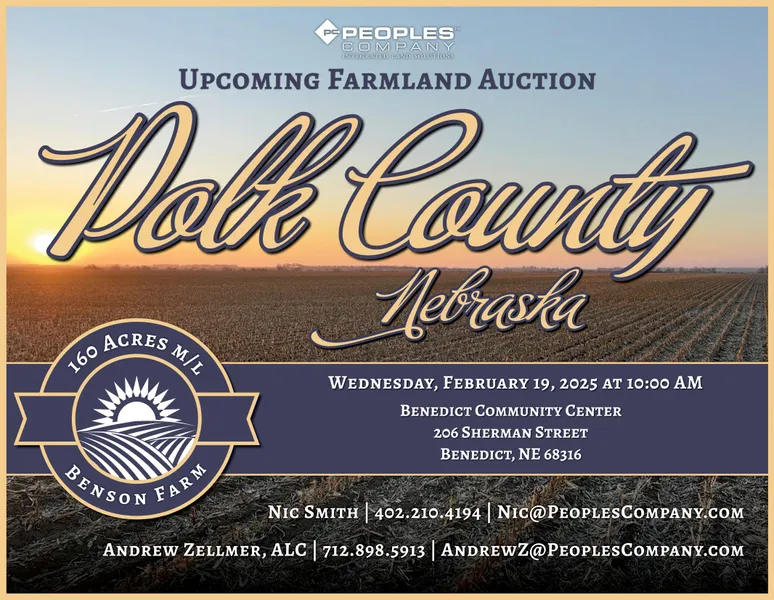 Polk County, Nebraska Live Public Farmland Auction - Mark your calendars for Wednesday, February 19th, 2025 at 10:00 AM CST!