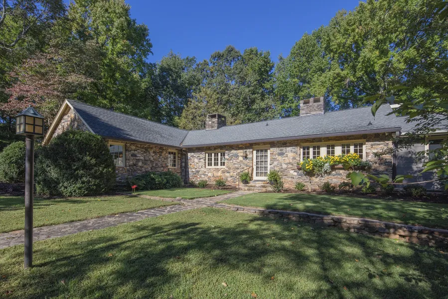 Tryon North Carolina. Wonderful country cottage with great mountain views on 5 acres in Tryon's Historic Hunting Country. This private location is minutes to downtown Tryon, The Tryon International Equestrian Center, Hendersonville, a short drive to Asheville. The home and grounds are well-maintained with exquisite interiors and beautiful landscaping. In the heart of the FETA trail system. This property includes a spacious separate guest cottage with a private bath. Garage and a level cleared backyard area for children and pets! With stone walls and old-world charm and elegance. Stone & masonry fireplaces, beamed ceilings, cedar closets, pantry, tons of storage, one level living at its best! Set well back from the state road for total privacy and quiet living - this property has it all!