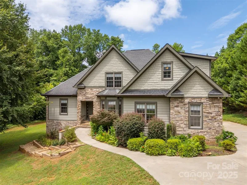 Charming Home with Style and Space! This beautiful 4-bed, 3-bath home with hardboard and stone siding sits on 2.17 acres in a gated, landscaped community with a peaceful stream. Large windows fill the home with natural light, while the spacious deck and screened porch are perfect for morning coffee or outdoor entertaining. Inside, enjoy vaulted ceilings, hardwood floors, a stone fireplace, built-ins, and an open-concept floorplan. The main-level split floor plan features a primary suite with tray ceiling, walk-in closet, and ensuite bath with garden tub and separate shower. Two guest bedrooms and a full bath complete the main floor. Upstairs offers a versatile bonus room, additional guest bedroom, and full bathgreat for guests, office, or den. The kitchen shines with granite countertops, stainless steel appliances, and a breakfast area. The unfinished basement offers space for a workshop or storage, and a 2-car garage adds even more flexibility. Dont miss this special home!