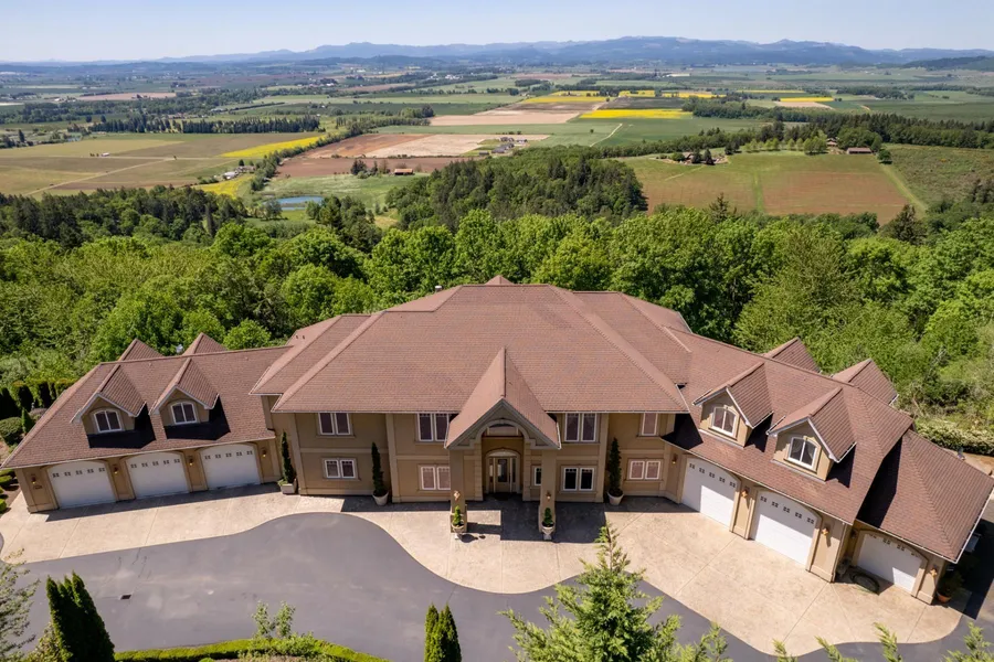 Exquisite West Salem gated estate with breath-taking 180 degree vineyard, valley and coastal range views. Located in the highly sought after Eola Hills, this grand estate offers ultimate privacy, pristine landscape and picturesque scenery at every glance. Here you will find a grand entrance with soaring ceilings, expansive view windows and sophisticated details and design throughout. Featuring Brazilian cherry wood floors, granite counters, custom wood built-in features, hydronic radiant heated floors and top of the line smart home and security features. Offering a spacious yet functional floor plan which includes 8664 sqft, 5 bedrooms, 5 bathrooms, executive office, gourmet kitchen, formal dining room, media room, gym space, and a finished basement with kitchenette. Sip award winning Oregon Pinot Noir on one of the home's three balconies or enjoy the beautifully designed backyard landsc...