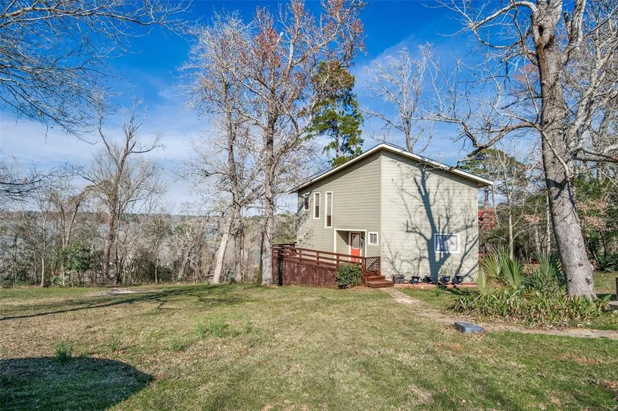 Need a weekend getaway? This gorgeous lakeview home sits on one of the highest points on Lake Livingston. Completely updated open concept home sits on 3 lots and is built on concrete piers. Enjoy long range views of the lake from the living room or upstairs bedroom through a two story bank of windows. Both bedrooms have en-suite baths that have been remodeled with custom tiled walk-in showers. The kitchen is also updated with granite counters and custom cabinetry. The house comes with both a water softener and reverse osmosis filtration system. All floors are wood-look waterproof vinyl plank for ease of maintenance. The exterior features Hardi-plank siding, an upstairs balcony, and spacious deck for entertaining with room to install an outdoor kitchen. The neighborhood has a private boat launch nearby and fishing pier. Third lot may be used to build garage, workshop, or boat storage.
