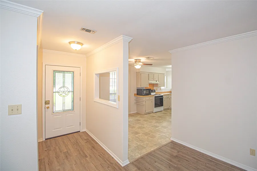Escape to Bridgeview, a beautiful, well-established subdivision at the heart of Lake Livingston. This 3/2/2 home will make the perfect permanent residence or weekend getaway! It features a split floor plan that makes it feel larger than the actual square footage. The living room has a wood burning fireplace, vinyl flooring, & crown molding. There are ample cabinets & countertop space in the kitchen. The primary bedroom is complete with an en-suite bath & walk in closet. Freshly painted interior, new flooring, blinds, exterior doors, & garage door. New HVAC unit installed in June 2024. **The 2ND LOT is unrestricted & is NOT part of the POA. Currently used for privacy, but there are multiple uses available! Easy access to the lakefront amenities - private boat ramp, covered pavilion, picnic area, & playground. Convenient location to the city of Onalaska, Livingston & approx 35 min to Huntsville.