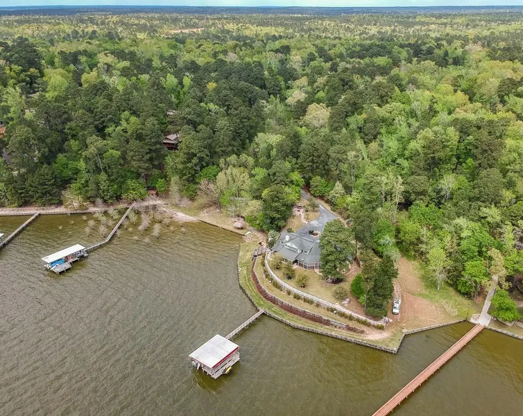 Private gated w/670 paved driveway leading to custom built home on 5+ acres w/390 ft of water frontage & amazing views/sunsets on Lake Livingston. Tranquil & secluded surroundings include a private park w/beach area & palapa, firepit and 4 separate sitting areas throughout the property. 4 bedrooms, 2.5 baths, w/screened sun-room, game room & loft. Luxurious Waterfront Master Suite w/Designer Bath, Separate Shower & Soaking Tub, Double Vanities, Heated Floor, Hot Water on Demand & built in tub heater. Vaulted/Beamed Ceiling and Living Room/Dining Open Concept. Plantation shutters downstairs. Heatilator F/P. Utility Room w/Sink. 2 Car Oversized Garage w attached large workshop area with its own overhead door. 2 addl.storage bldgs. Amazing boathouse/lushly landscaped grounds with lots of lighting. 16kw whole house generator w/auto transfer switch. Waterfront views from almost every room. Do...