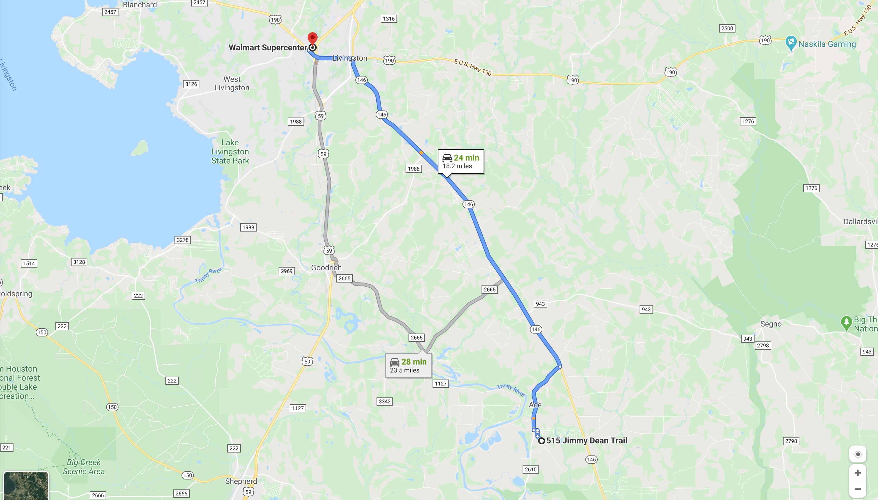 20 minutes to Livingston, Texas : Population 5,300 (more info)