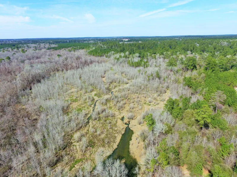 The year-round Woods Creek comprises the western boundary with numerous ponds and marshland offering excellent migratory bird hunting.