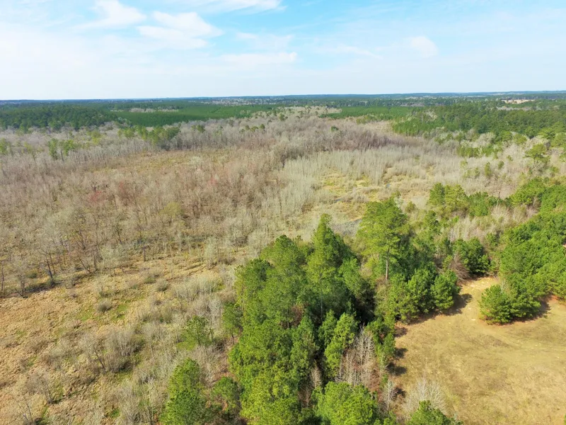 The year-round Woods Creek comprises the western boundary with marshland offering excellent migratory bird hunting, while the central and eastern portions of the property are heavy piney woods.