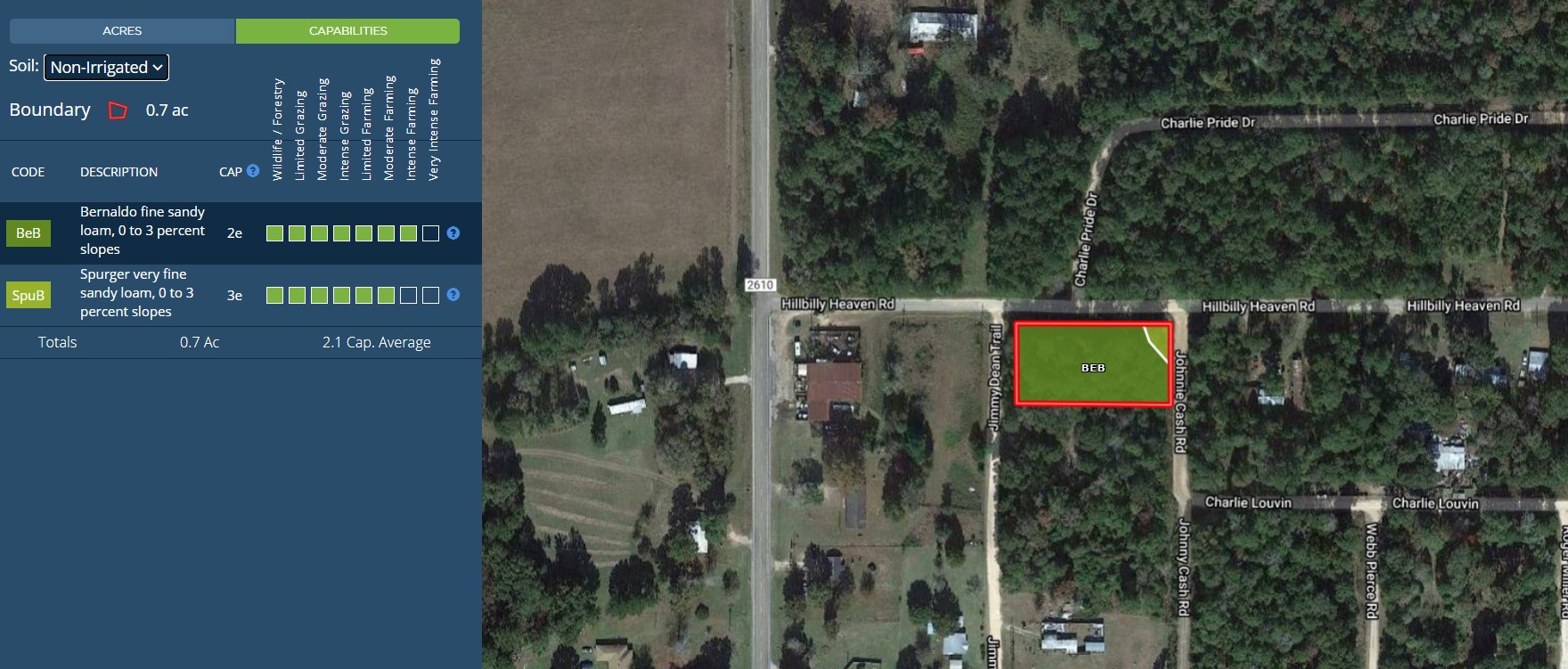 Search for detailed parcel information including; Elevation & Vegetation Maps, Ownership Information, Detailed Parcel Information, Crop History Map, Soil Survey Productivity Data, and more.