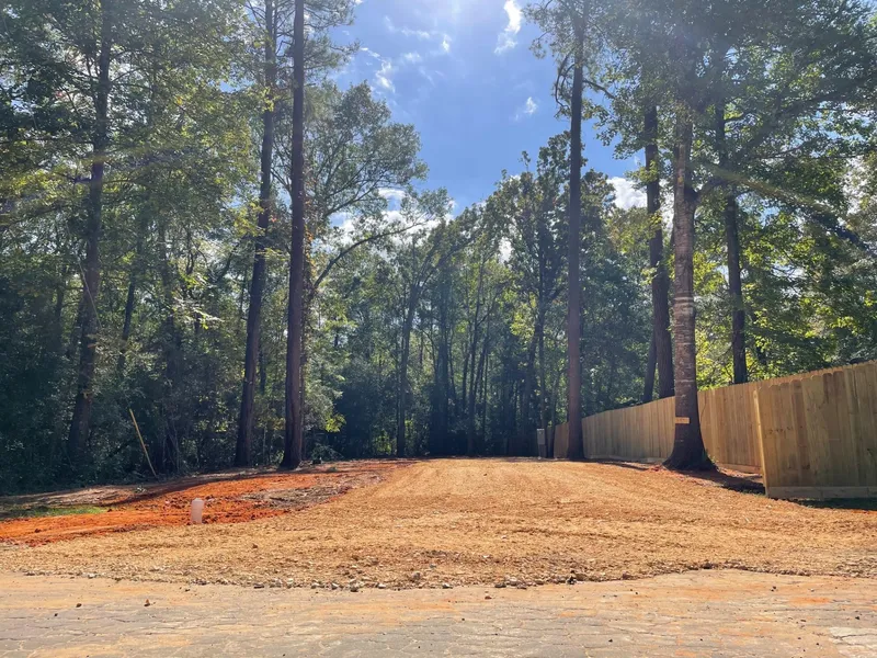 We started by clearing the lot of all of the brush (saving any trees 6 in diameter), performed stump grinding, installed a culvert, set a driveway with road base and gravel finish, and hauled 8 loads of 60 / 40 fill dirt onto the lot to evenly grade it and to raise the elevation for effective drainage (Note: This Neighborhood is Not in a Flood Zone).