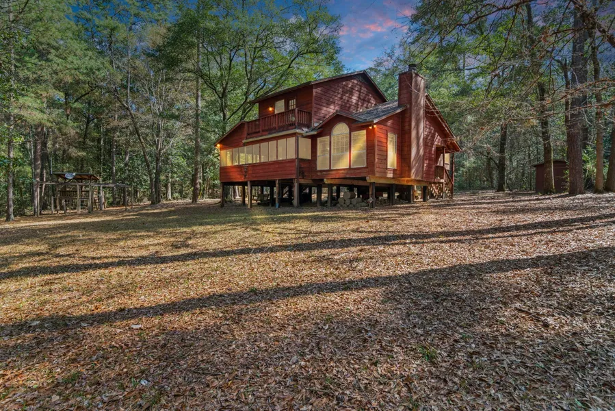 The three bedroom, 2 bath house is well built and maintained. It is ready to move into. The house is located in a clearing in the woods and the main floor of the house is at the level of the tree tops. This is a special place with a clear running creek, pond with dock, natural mature pine-hardwood forest. You must see to appreciate.