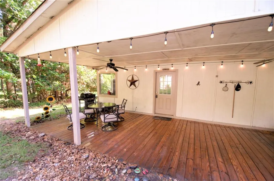 3 bedroom home with a very large front covered patio, one detached garage and additional storage behind the home on 5 acre lot! Recent roof, recent HVAC, new AC in primary bedroom (May 2021), new waiter heater (May 2021), bathroom taken to the studs and completely redone (May 2021), Roof replaced in 2017, front patio and garage built in 2017. Only 1h45mns from Houston. Can be sold with all furniture and spa.