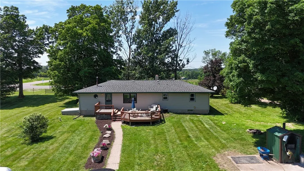 Potential Hobby farm awaits on 3 Acres. Perfectly set up for livestock and gardening aspirations. Fenced in areas with pasture. Plenty of room and opportunities for a garage, shop or barn. Also includes dog kennel. Beautiful views. Charming ranch style home offers comfortable living with a big open spacious floor plan with large gathering areas. 3 bedrooms, 1 1/2 bathrooms, two laundry rooms (basement and main level). Front and back decks for entertaining or just relaxing. Unfinished basement with fireplace. Enjoy the peaceful country living, while not to far from town and less than an hour from the Twin Cities.