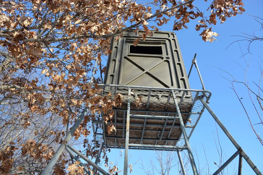 - Small hunting food plot with a box blind on the north end