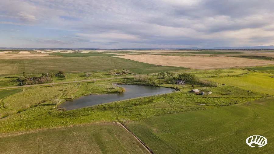 The agriculture in the area consists of winter/spring wheat, barley, canola, and hemp. With the water shares that convey with the purchase and topography of the farm, it is set up perfectly for flood irrigation, dryland farming, and highly productive pasture production. As the seller explains, wheat yields of 85+ bushel per acre are not uncommon on the irrigated portion. Twenty shares of water rights also convey with the farm, which feeds the reservoir, home, and irrigated lands.