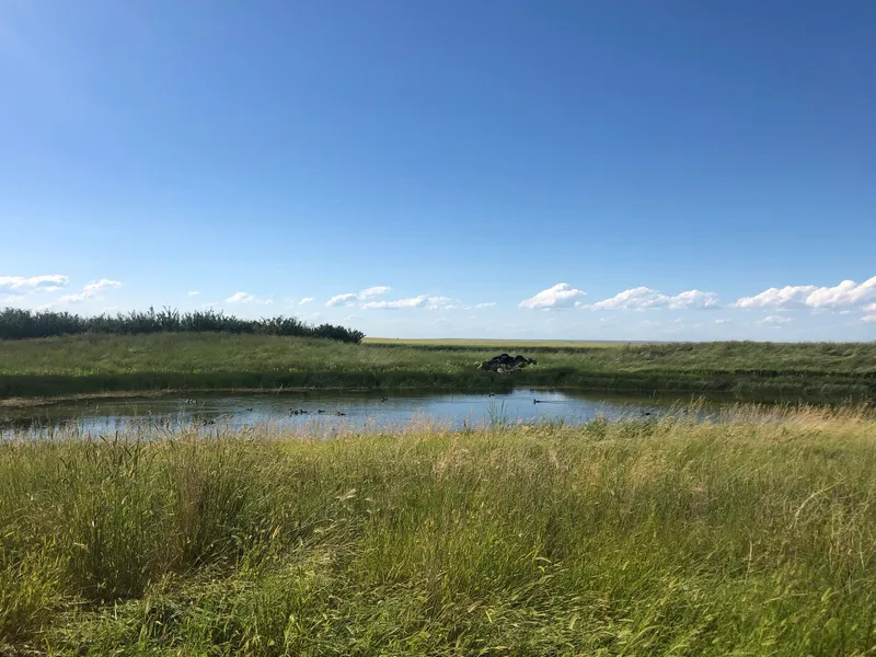 Come home to a huge house on 5 acres with a pond and a detached, two car garage! You'll love the trees surrounding the property providing a wind break and privacy. Your ''neighbor'' is farm ground, so lots of privacy offered here. You will appreciate the big open kitchen with high ceilings, a walk in pantry and a skylite. On the main floor, find two bedrooms, a den, a separate dining room with French doors, full bath and a large living room. There is a deck off the front and the back, both with nice views. Downstairs, are three more bedrooms, a full bath with soaking tub and and a living space with a gas stove. Laundry and mechanical room are in the basement. Garage is detached, metal, with metal roof. Newer interior paint in designer colors. Metal roof on main house. Manufactured home on permanent foundation. Expect to see abundant duck and pheasant on your own property.