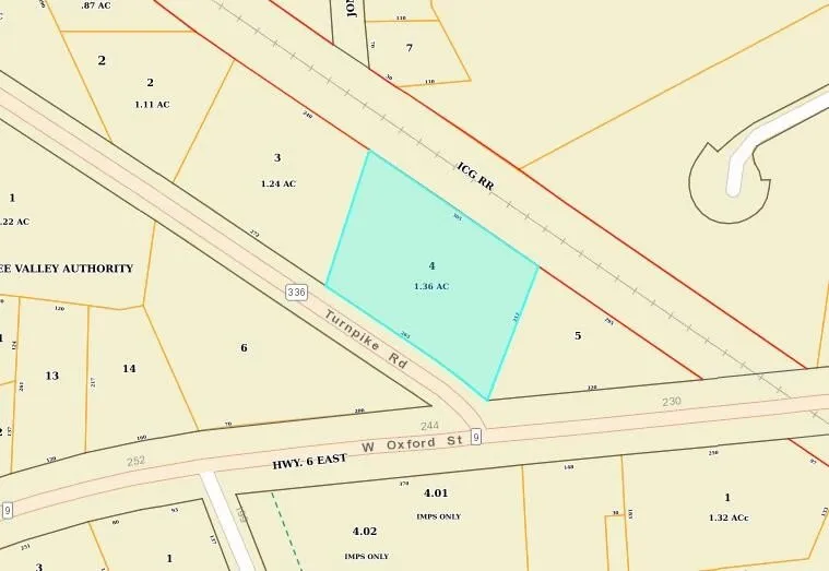 Check out this 1.3 acre Commercial lot in a very high traffic area! It has approximately 300 foot of road frontage, situated at the intersection of Turnpike Road and Oxford Street. Great location with high visibility! Easy access to HWY 15. All info subject to verification.