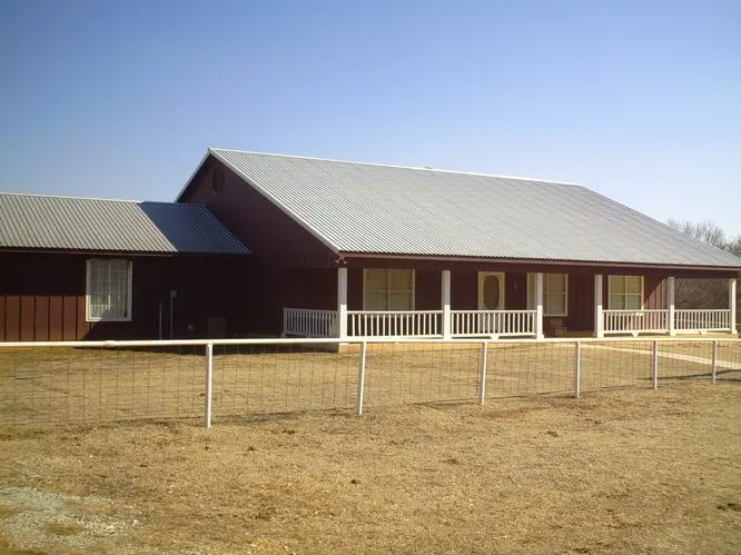The horse barn has three stalls with three runs. the runs are made of pipe and succer-rod and there are two water hydrants located at the barn runs. the barn is 30' x 50' with a tack room and hay storage area.