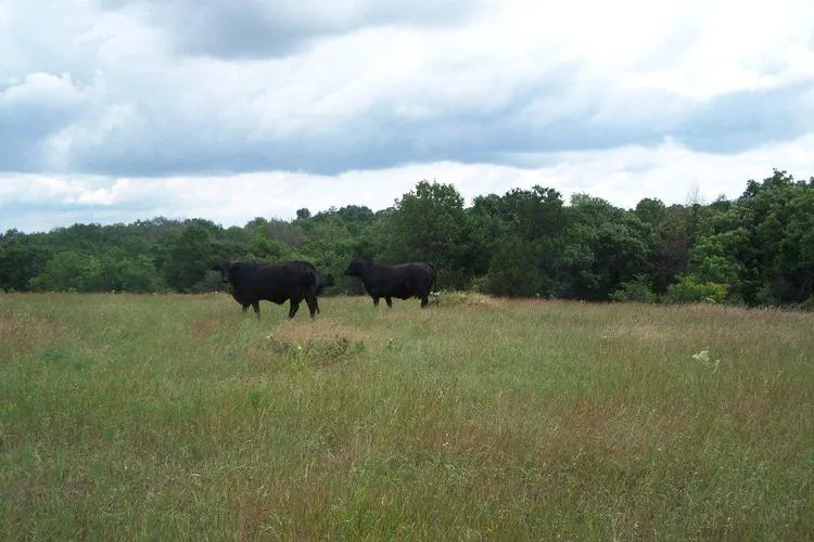 Terrain: This ranch is divided into 6 pastures and is approximately 50% open meadows and 50% mature hardwood timber. The terrain is rolling hills with trees scattered throughout. 200 Acres of hay meadows.