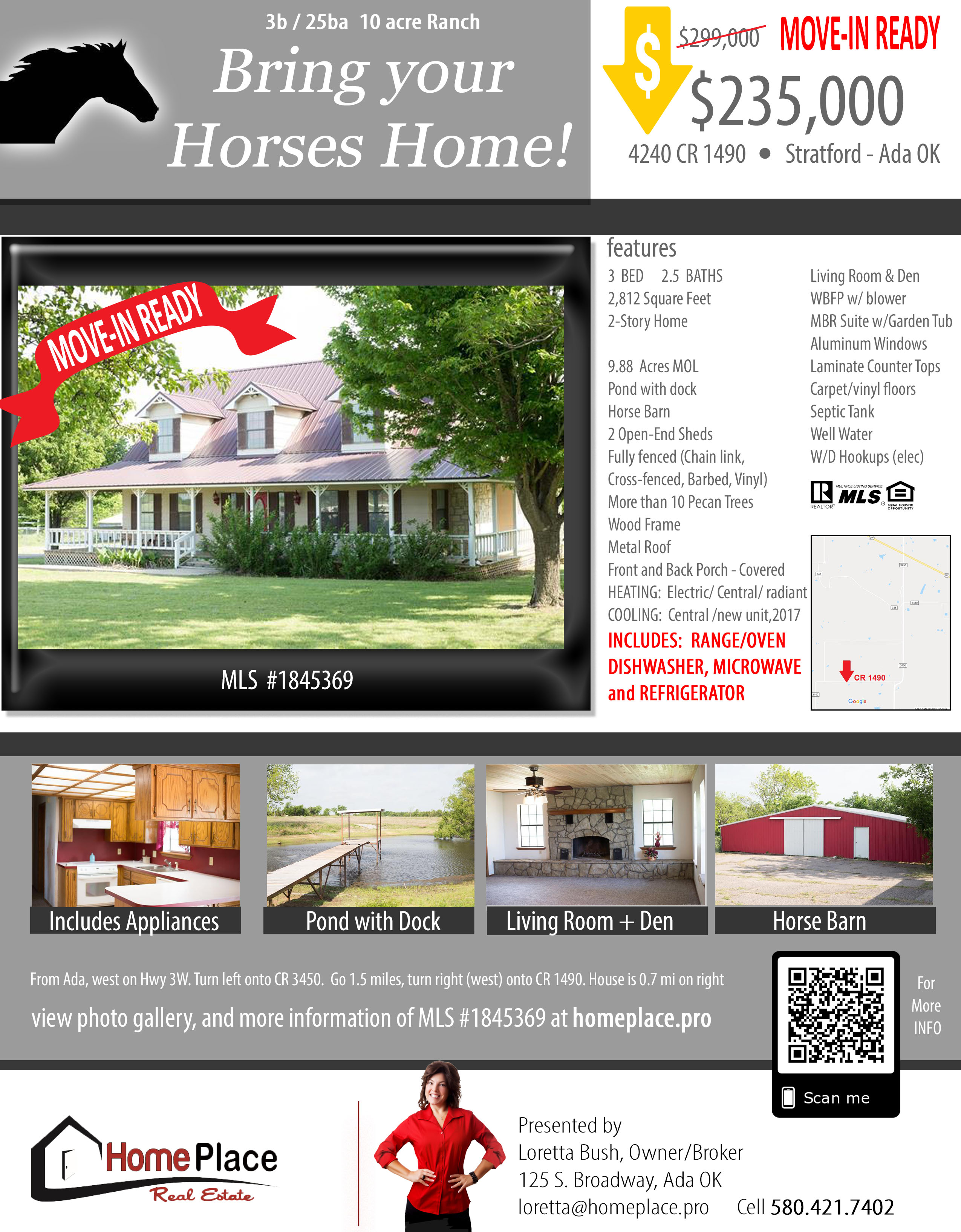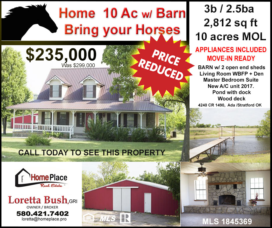 NEW LOW PRICE $235,000 Bring your horses! Spacious 3b/2.5ba Farm House on 10 Acres incl a Horse Barn with 2 open end sheds. Enjoy a beautiful pond w/ dock and pecan trees from the beautiful wood decking in the front & back. Inside, you'll have almost 2,000 sq ft. There is a Master Bedroom Suite on the 1st floor, the other 2 bedrooms upstairs. Living room has a WBFP w/blowers. NEW A/C unit in 2017. Property is fully fenced. 2 -car garage. ALL APPLIANCES INCLUDED -- MOVE-IN READY MLS 1845369