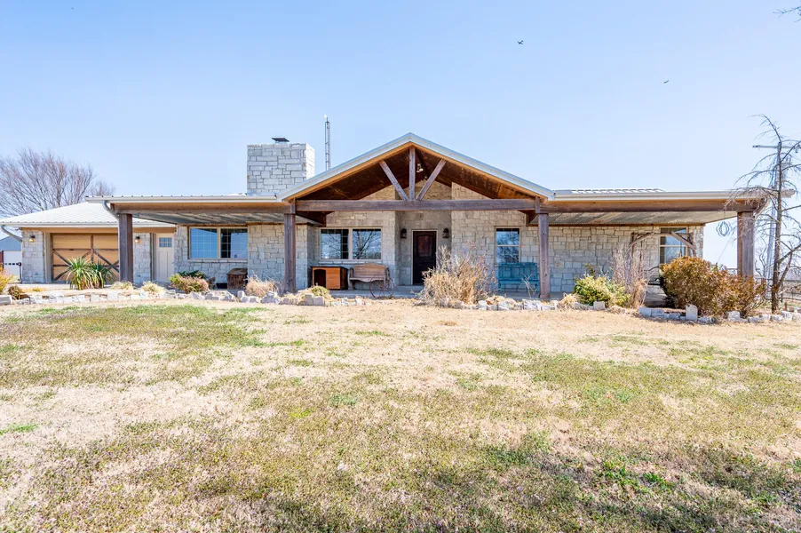 Gorgeous Rustic Mountain Style Home with 27.89 Acres! Property features: beautiful great room with wood burning fireplace, great kitchen with induction cooktop, double oven, and it overlooks both living rooms, dining area, second living area or formal dining room, huge owners suite, saltwater sports pool with slide and automatic cover, 1025 sqft guest house, 50x60 machine shop, 40x42 insulated shop, 50x50 livestock barn with 20 ft lean to shed, tack room, 17 frost free exterior faucets, and much more!