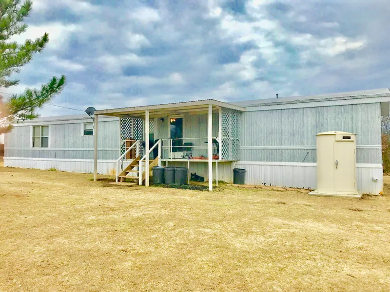 Great country living on a beautiful 5 acre lot. Very well maintained mobile home, 3 BR, 2 baths. Owner has added a nice front porch & back ramp, plus a solid safe room to weather the storms. Good 2 car carport and bonus storage building.