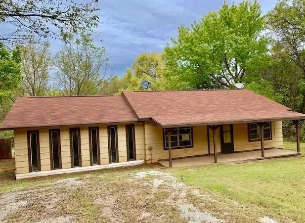 Private Country Home on 1.28 Acres! Property features: two living areas, open kitchen and dining area, covered front porch, newer roof, storage building, and large backyard with mature trees!