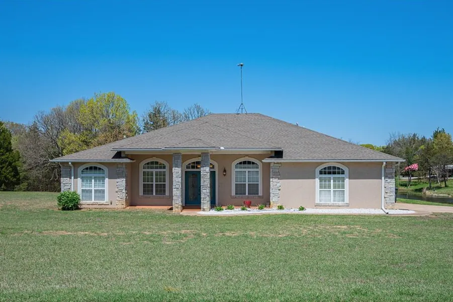 If you want peace & quiet or if you are looking to entertain, this back patio can handle both! Stocked fishing pond, 30 X 40 shop and a beautifully laid out home on 2.5 acres! HUGE open floor plan with the extra living space and spacious kitchen with the MASSIVE island and perfect pantry! TONS of natural lighting with all the LARGE picture windows on the north side of the home just shows off that view!! Kitchen fridge stays!