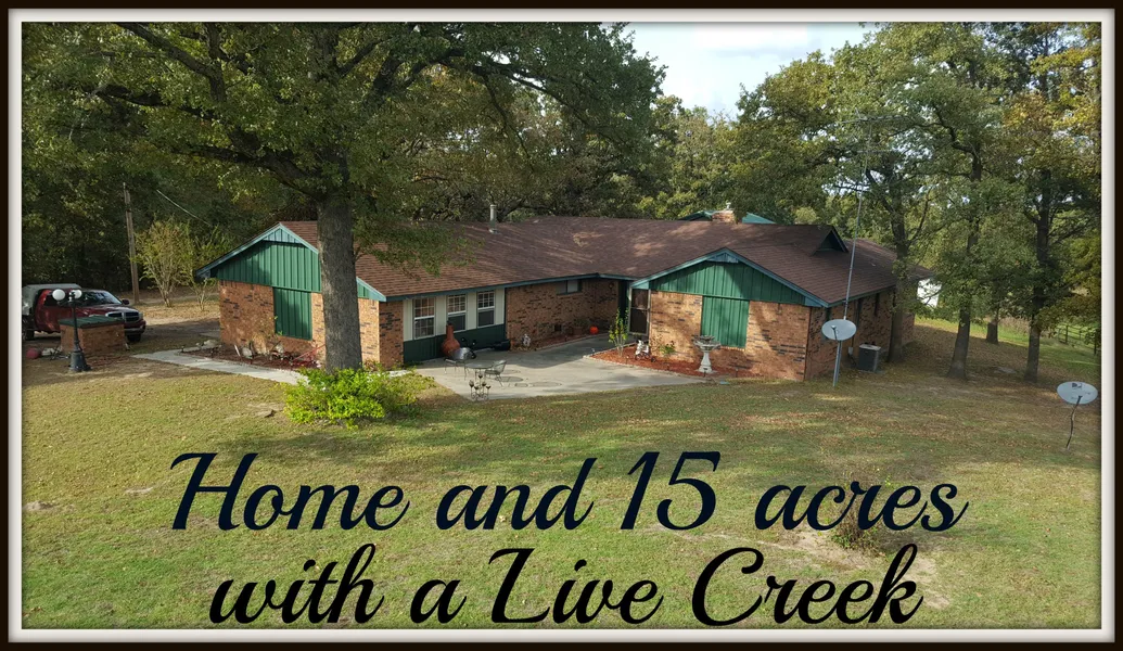 PRIVATE HIDEAWAY. Enjoy this spacious 3 bedroom, 2 bath home with 2 living areas, open floor plan, relax by the pool in the shade of an all steel cabana with enough space to play a little basketball, or take a walk out on this beautiful 15 acres. Includes a large 40x48 barn with a partial cement floor and loafing area plus ample Bermuda grass for grazing. WOW! Only 15 minutes from downtown Ada or 1 hour to Norman LIVE CREEK WITH 5 FOOT TALL WATERFALL THAT HAS RUN 24/7 FOR AS LONG AS ANYONE CAN REMEMBER.