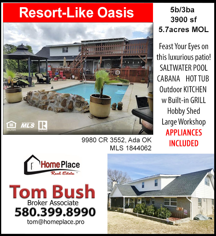 Have a large family and need a lot of room? Then this home is for you. 5 bedrooms (could be 7) with 3 baths on nearly 6 acres partially fenced. All in a rural setting just north of the Ada city limits. The patio is something to behold! A 2-story deck overlooks the spacious patio which features an in-ground saltwater pool, cabana, hot tub/spa and an outdoor kitchen with built-in grill. There is also a hobby shed, and a large workshop building! INCLUDES KITCHEN APPLIANCES. Move-in ready! MLS 1844062