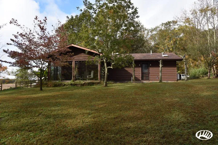 PRICE REDUCED!! Beautiful home with outbuildings and scenic landscape. This property is a nature lovers dream. Located in the Millstone Bluff area of Southern Illinois, this home and wooded acreage is quiet, secluded and surrounded by nature. A long private drive leads through hardwood timber to the home. Nestled on a hilltop, the home blends seamlessly with the surrounding landscape and feels like a natural part of the surrounding forest. The two-bedroom, two full bath home has ceramic tile throughout, a large living and dining area with a wood-burning stove, a stone wall and stone accents and large windows to let in plenty of natural light. There is a large sunroom with sliding glass doors and a large screened-in front porch. There is also a skylight and a light tube in the master bath. All this natural light really aids in the natural feel of the home. Beside the home, there is a 40’x39’ metal building with a 15’x24’ woodshop. A camping area sits just in the edge of the woods and is perfect for hosting family or friends around the campfire. There are good deer and turkey hunting opportunities to be had on the property. The hardwoods have plenty of mast producing oaks and act as a bedding and transition area for deer feeding on the neighboring row crops. If you’re looking for a quiet, secluded home to raise a family or a private get-way, give us a call today and schedule your private tour!