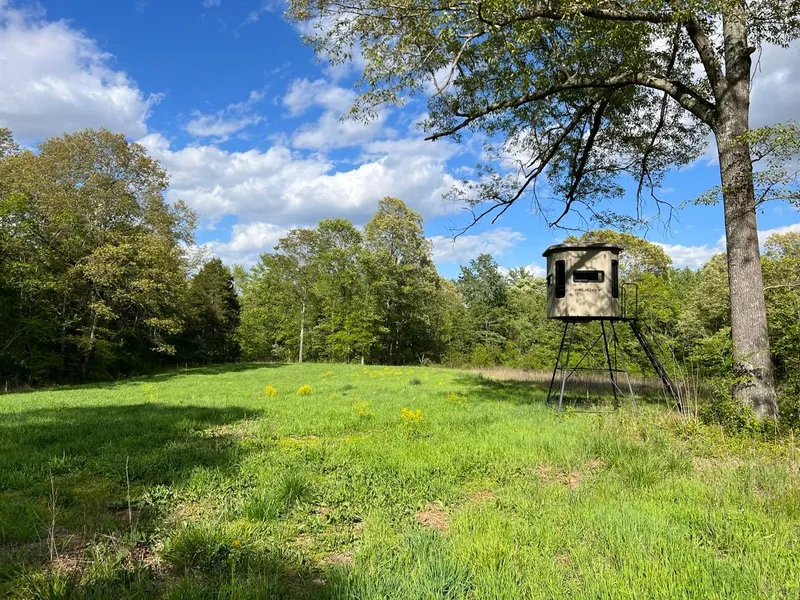 There is a small hunting lodge at the front of the property situated away from all hunting areas. The lodge has an open living room and kitchen area with hardwood and cedar accents, two carpeted bedrooms, wrap around porch, and central heating and air. Across the gravel drive, there is a newly built metal building with concrete floors and three rollup garage doors for housing tractors, UTV/ATVs, trucks and equipment. It has a well with a salt and water cleaning filter system. Electricity is the only billable utility for this lodge.