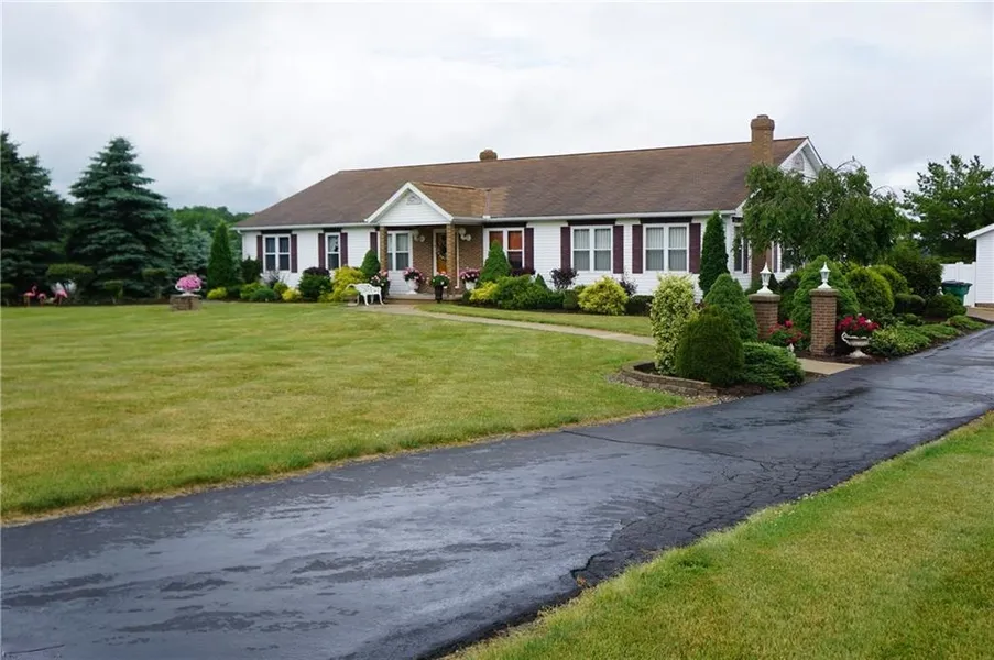 Custom built home on 35+ acres with seperate building that used to house the Monica Potter store w/parking lot. Gorgeous stone fence entryway to paved driveway. Lots of kitchen storage. Host a great dinner party in the massive dining room! You'll never want to leave your home when it is this fantastic! MUST SEE!!!