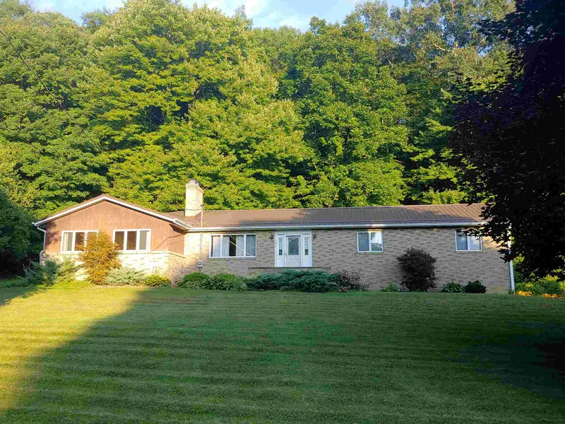 Fantastic brick ranch on 12 acres with lots of mature trees. Over-sized master bedroom and family room plus huge rec room and wood burner in the basement. Laundry has lots of cabinets and stack-able washer/dryer stays. Huge kitchen has tons of oak cabinets and includes all appliances! Dining area leads to glass sun-room. 4-5 bedrooms plus 2 full baths. Master bedroom and family room are adorned with beautiful wooden cathedral ceilings. House sits up on a hill with long driveway and there's a fabulous outbuilding too!