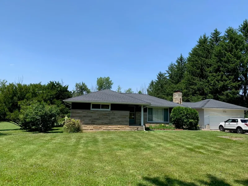 Aurora home on 7 gorgeous acres. This two bedroom, one bath ranch includes a two car garage, breezeway, and full basement. Location, location, location! Call today