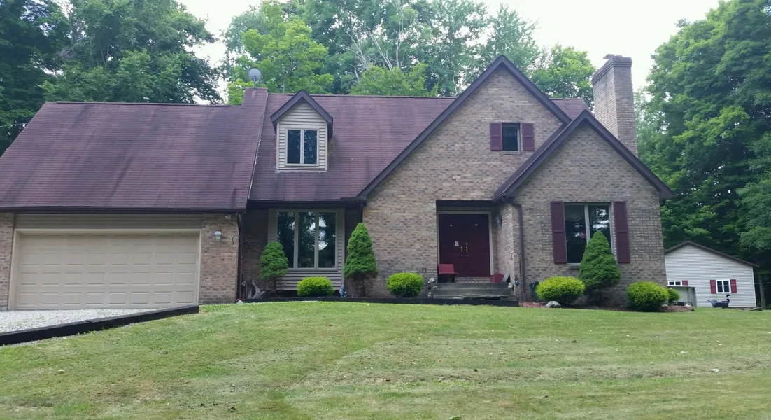 This house will make you feel warm and cozy, it is so homey. Beautiful stone fireplace in the living room with Brazilian hardwood floors in the LR, BR and den. The kitchen has granite counters and opens to the den which leads out to a gorgeous, glass enclosed sunroom with a spectacular view of the woods and beautiful pool. There is an extra 28'x26' barn/garage. All this on 8.3 wooded acres!