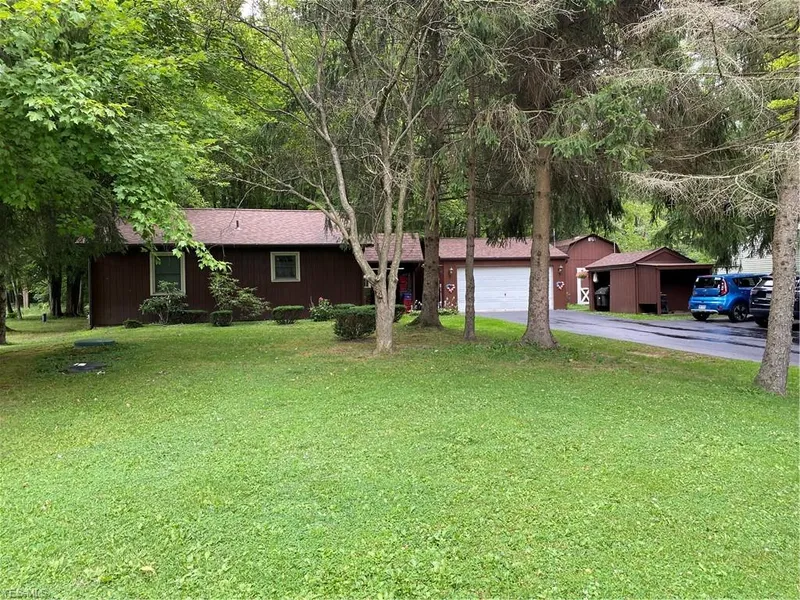 Hurry to see this cozy rustic ranch on a wooded 2.91 acre park-like lot with a paved asphalt driveway. Mature trees, wildlife and gorgeous views! This cute home boasts stunning knotty pine walls and vaulted ceiling in the great room/kitchen area. Two bedrooms, spacious bathroom and a laundry room that leads out to a huge 30x6 screened covered concrete patio perfect to entertain or have your morning coffee while enjoying the serene view. There is also a covered breezeway, two car 20 x 20 detached garage (1997) w/electric, an insulated 12 x 18 barn/w loft (1996) w/electric, a storage/wood shed AND 3 additional paved parking spots!! Plenty of room here for all your toys, hobbies etc! Approximate dates of upgrades: electric panels & breakers 2010, HWT 2013, Furnace 2010, roofs on all structures 2019, septic upgraded in 2005, vinyl windows 2007, water softener 2003, wood-burning stove 2015. All appliances stay including garage freezer. Invisible fence is present, you just need to purchase collars for your furry friends! One Year Home Warranty Included. With your special touches, this home can be your dream come true! Schedule your showing today before it's gone!