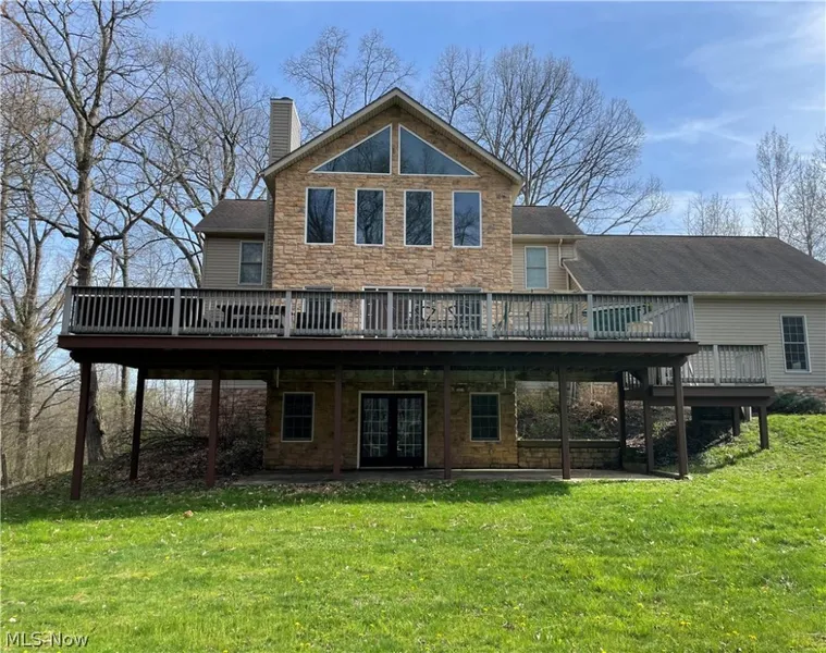 Nestled past the trees at the end of a private 400 ft tree lined drive you will find this gem. Sitting on just shy of 3 acres the home offers spectacular views from all windows. The front deck is approximately 40x11 elevated and opens into the vaulted ceiling living room. Fireplace with a stone hearth. First floor living including laundry off the kitchen. First floor master bedroom suite includes a jetted tub and shower stall. Hickory flooring, custom hickory cabinets. The eat in kitchen includes room for formal seating and and island sitting area. The oversized 3 car garage has plenty of storage areas. Patio doors lead out to a stamped concrete patio. The finished walk out lower level boosts another kitchenette, full bath, bedroom, office (potential 6th bedroom) and living room. Private Drive and Separate entrance for extended family living. The oversized cement drive allows room for re...