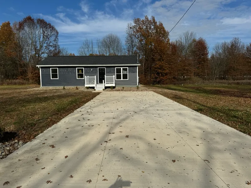 If you are looking for a new construction home that's never been lived in and has all the modern features, this is it!! Top grade vinyl siding w/2 porches. Inside has laminate floors in the living room, kitchen and bath and the bedrooms are cozy with carpeting. House comes with a stainless refrigerator, garbage disposal, black stove with griddle and an all-in-one washer/dryer. Bathroom fan has music which can be set by your phone. Lighting is all modern. The entire basement is carpeted, high-efficiency furnace, whole house filtration, sump pump, central air and an oversized driveway.