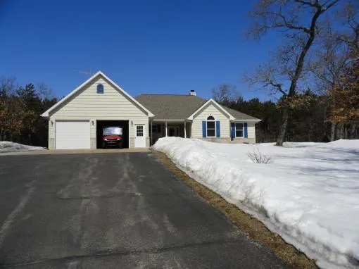 Escape to the country & enjoy 27 wooded acres. Distinctive features abound in this custom designed and built home. Hardwood floor in entry foyer continues throughout kitchen & dining areas. Open concept great room offers vaulted ceiling & floor to ceiling brick fireplace. Gourmet kitchen with abundant oak cabinetry, large pantry, and inviting snack island. Dining area features 2 separate entries to large maintenance free deck. Generous master suite includes private bath & walk-in closet.